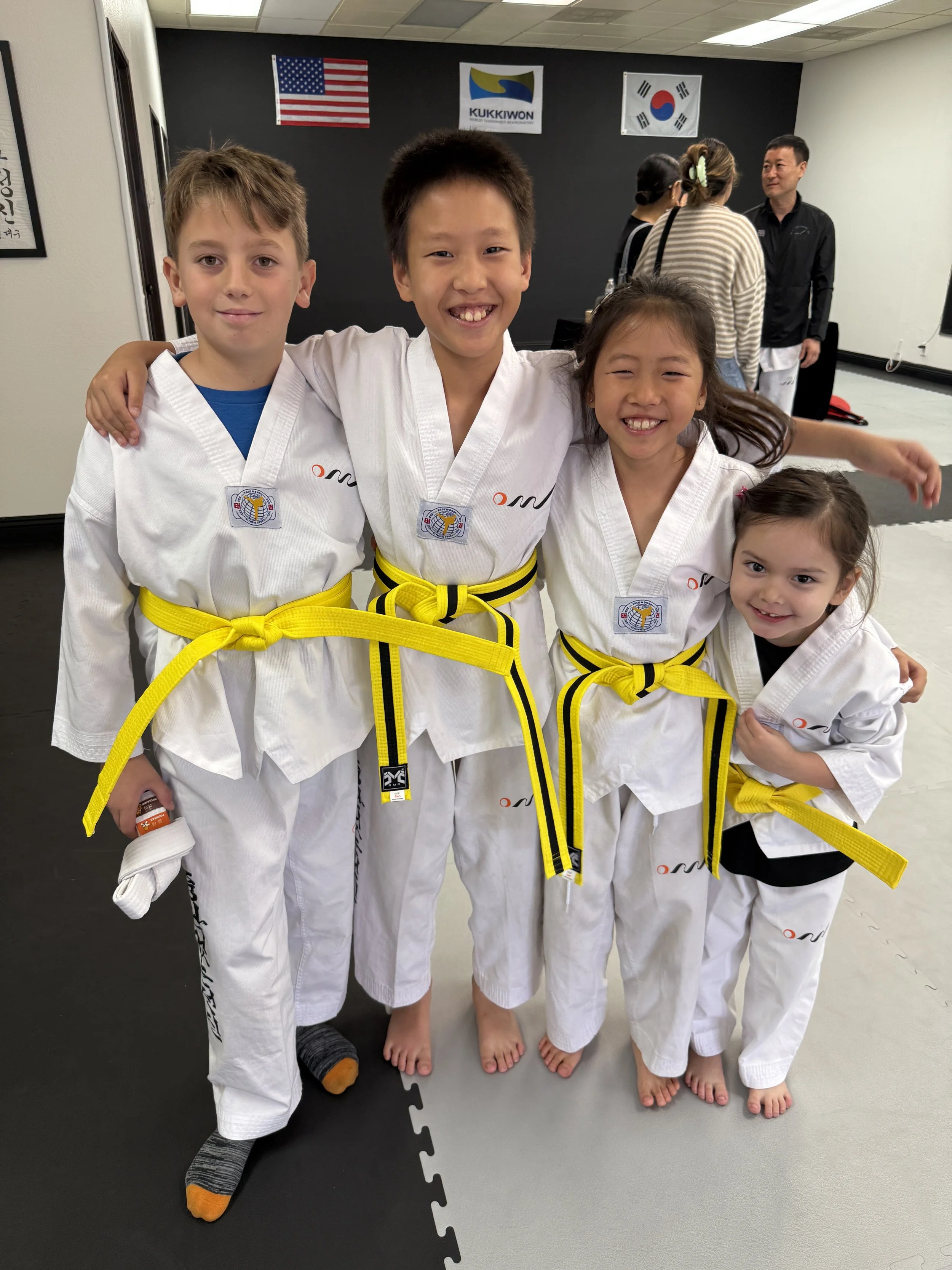 Our recreational kids program focuses on developing work ethic and self confidence. Kids will come in to train with their peers and learn the foundations of taekwondo techniques through the teachings of our instructors. When hard work meets dedication, kids will see their own progress as they master each kick and earn their belts. They will learn to meet their goals in a fun and encouraging environment.
